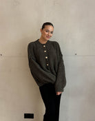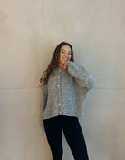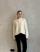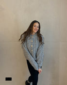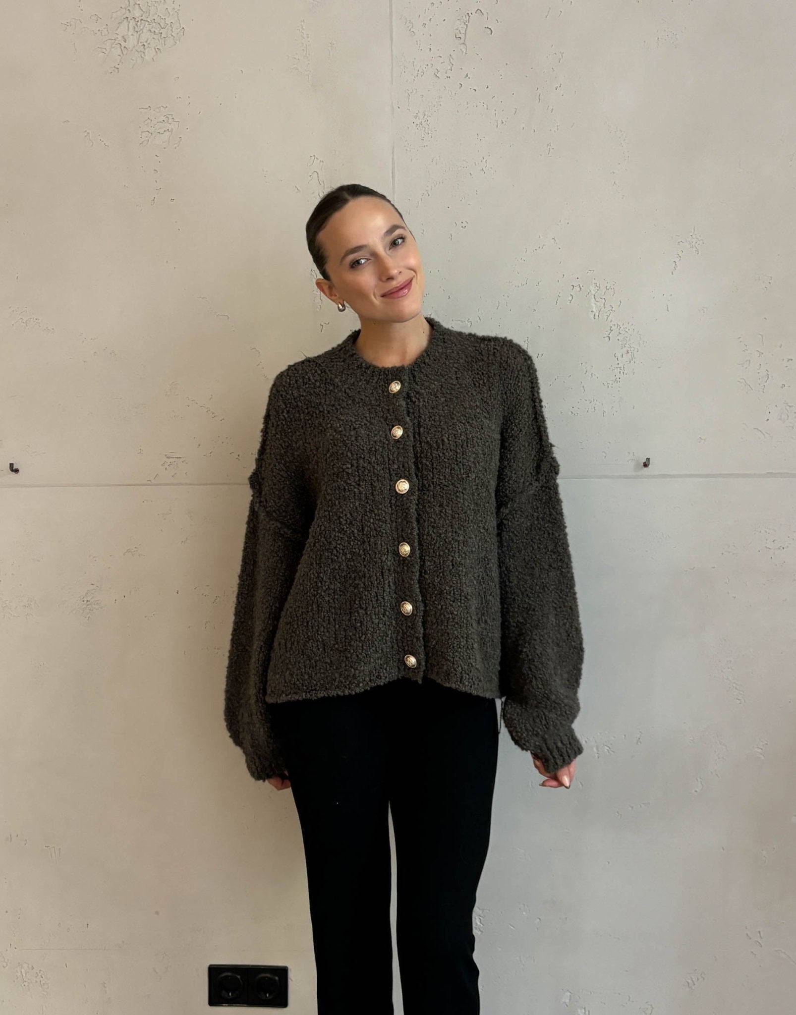 Kurze Boucle Strickjacke mit Goldenen Knöpfen