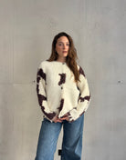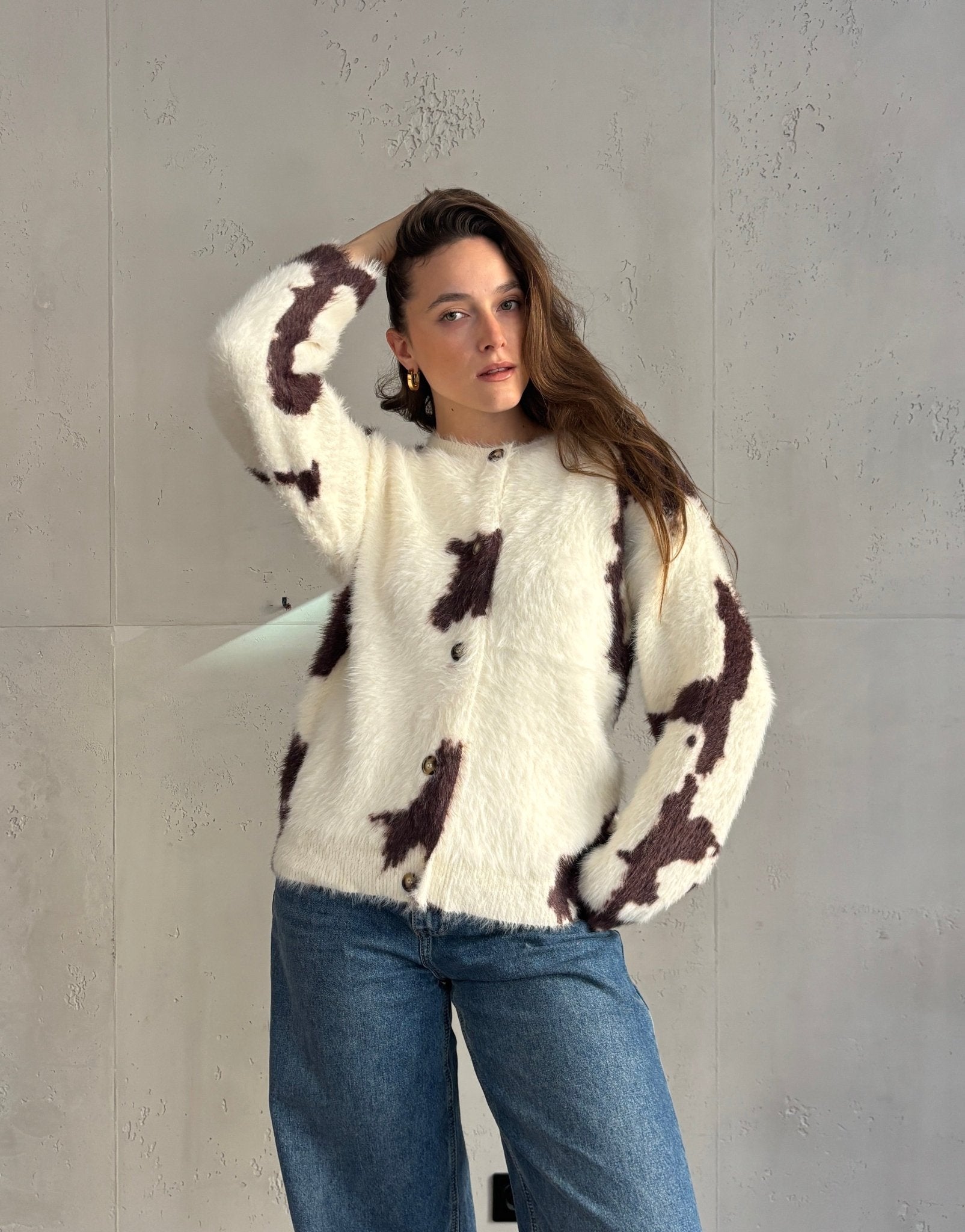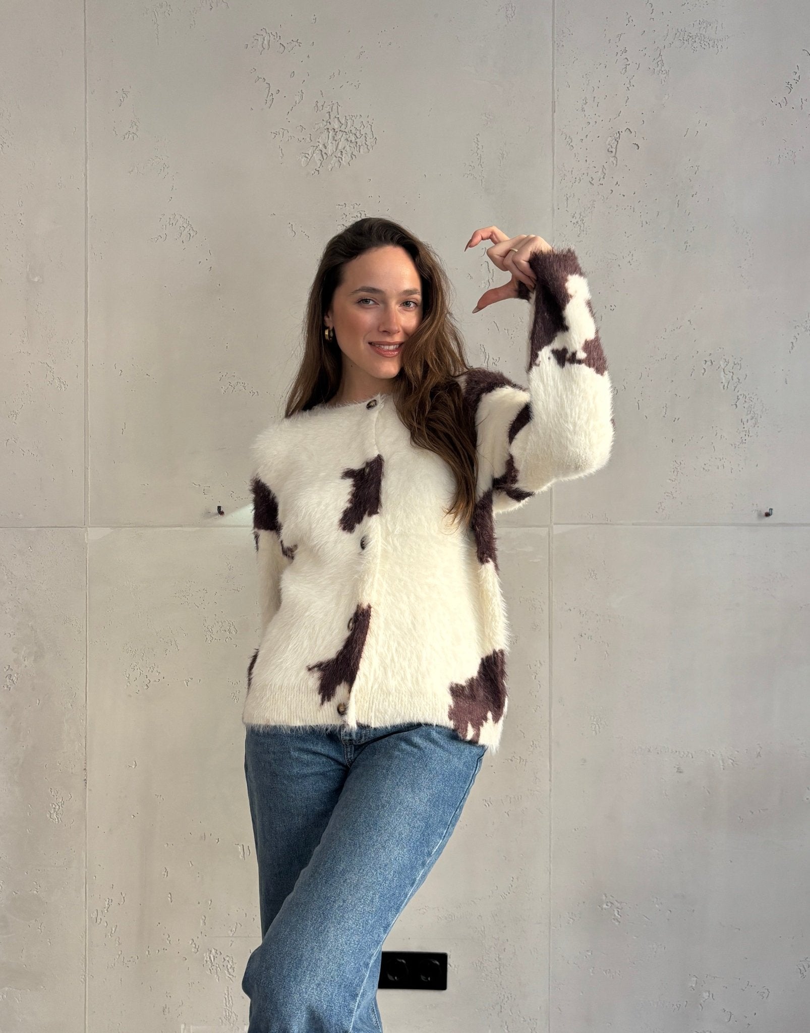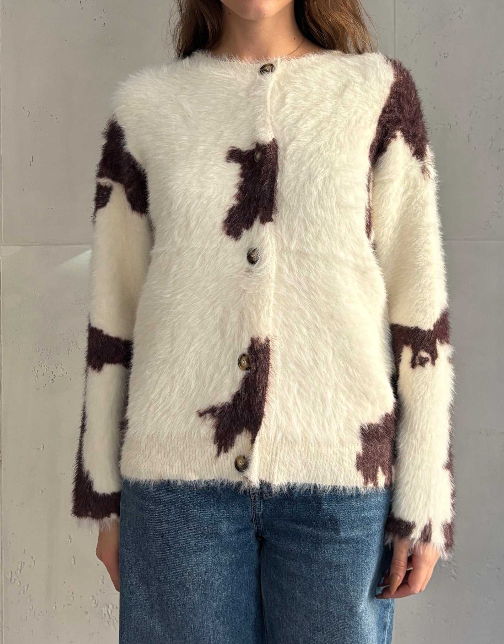 Cow-Strickjacke mit Knöpfen & Rundhals