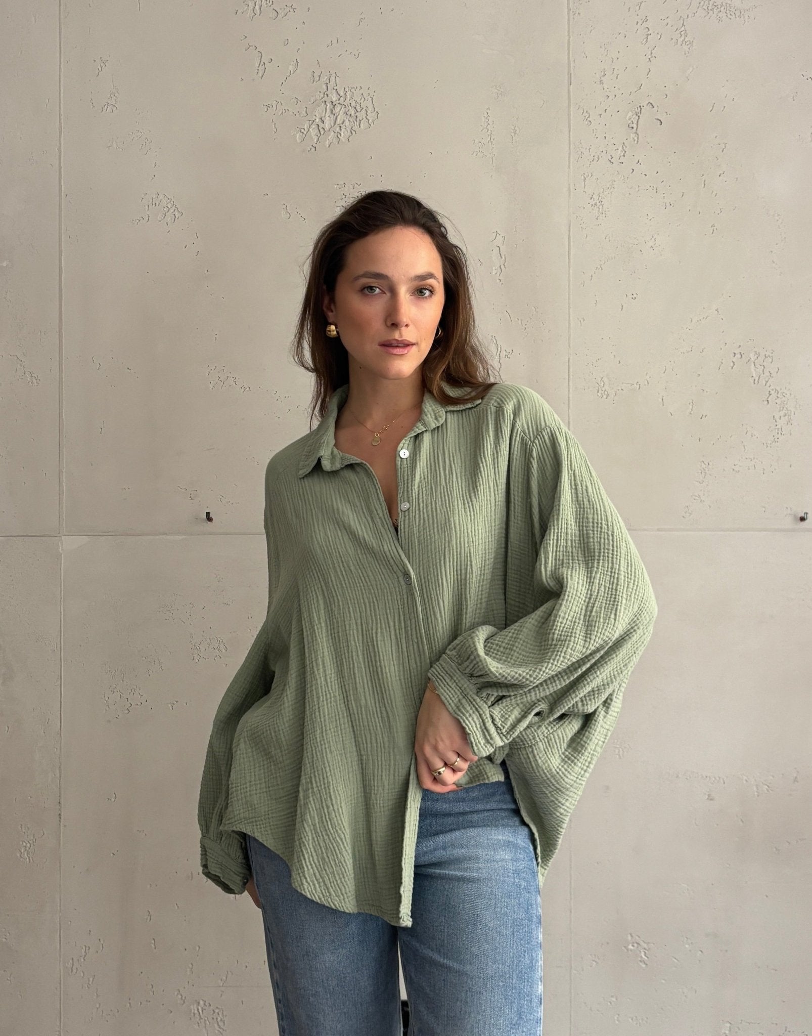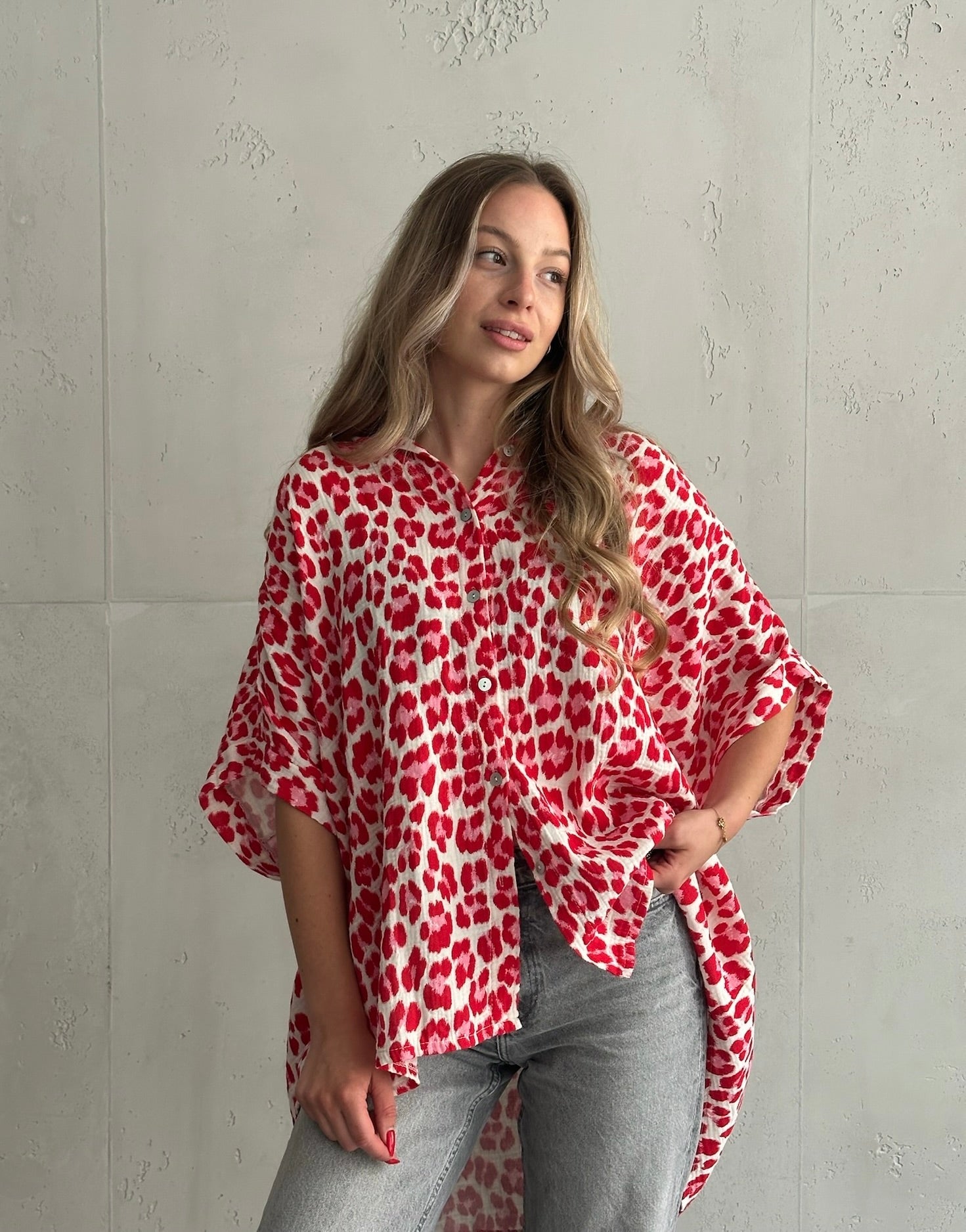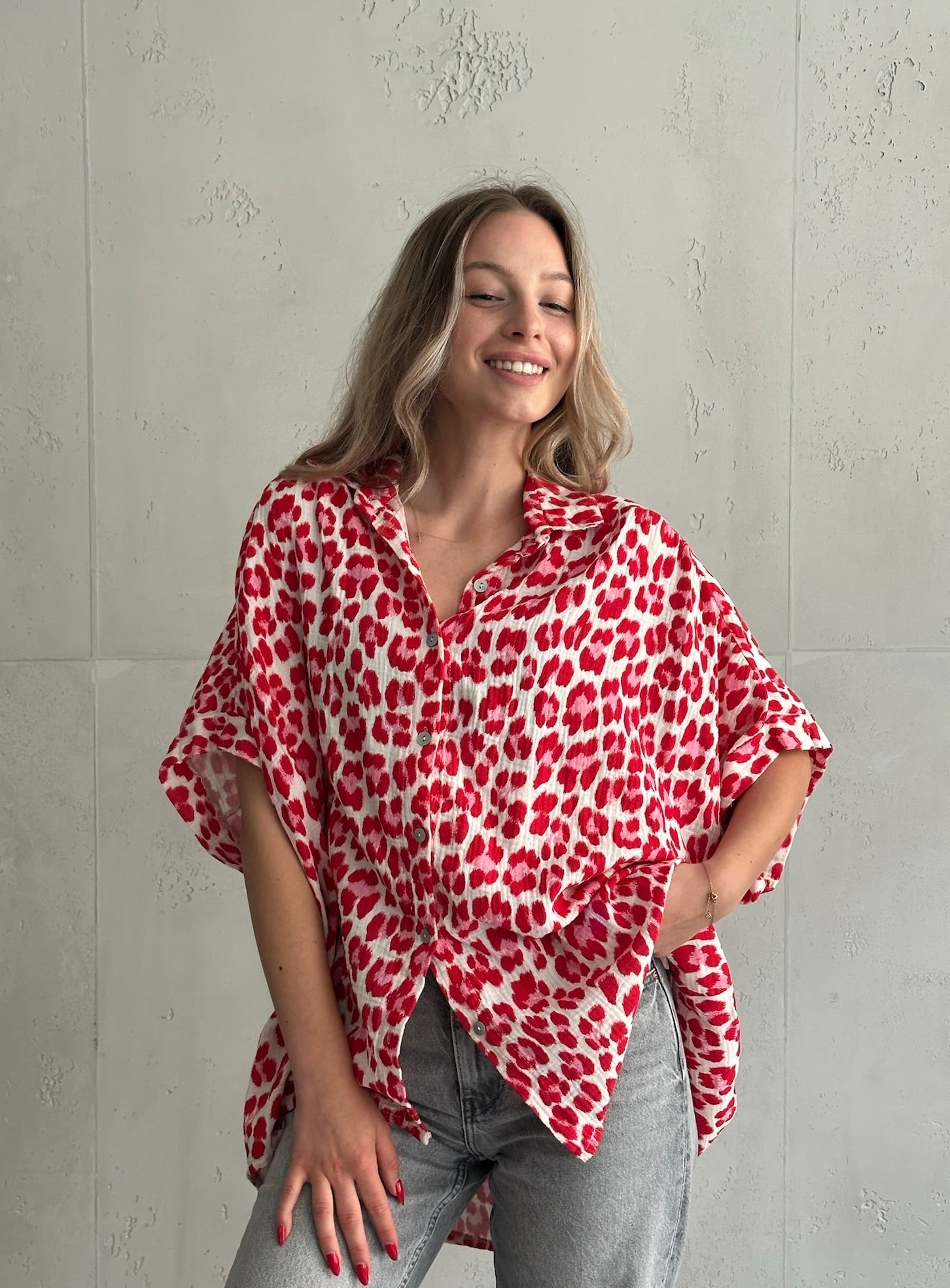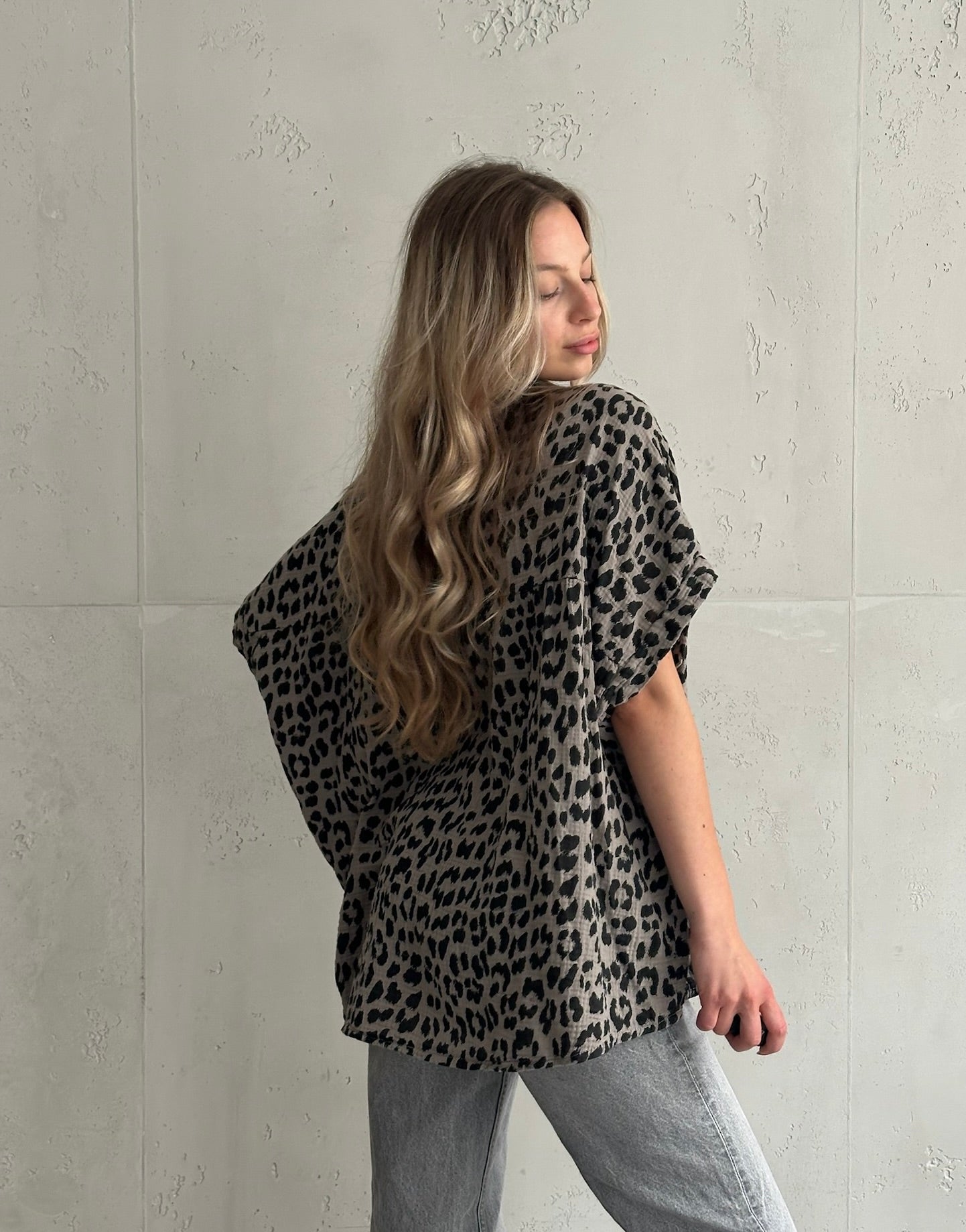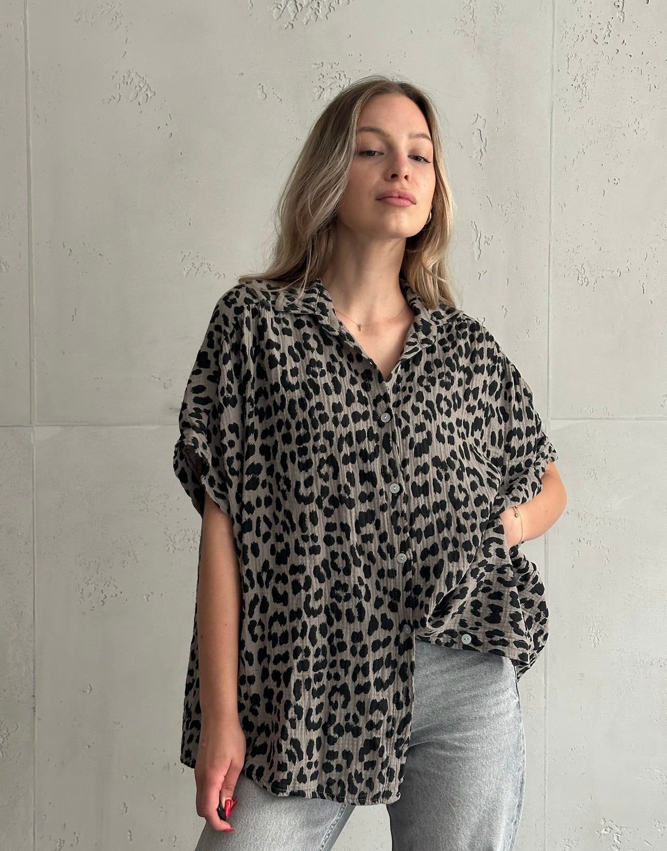 Oversize Leo Musselin Bluse mit kurzen Ärmeln