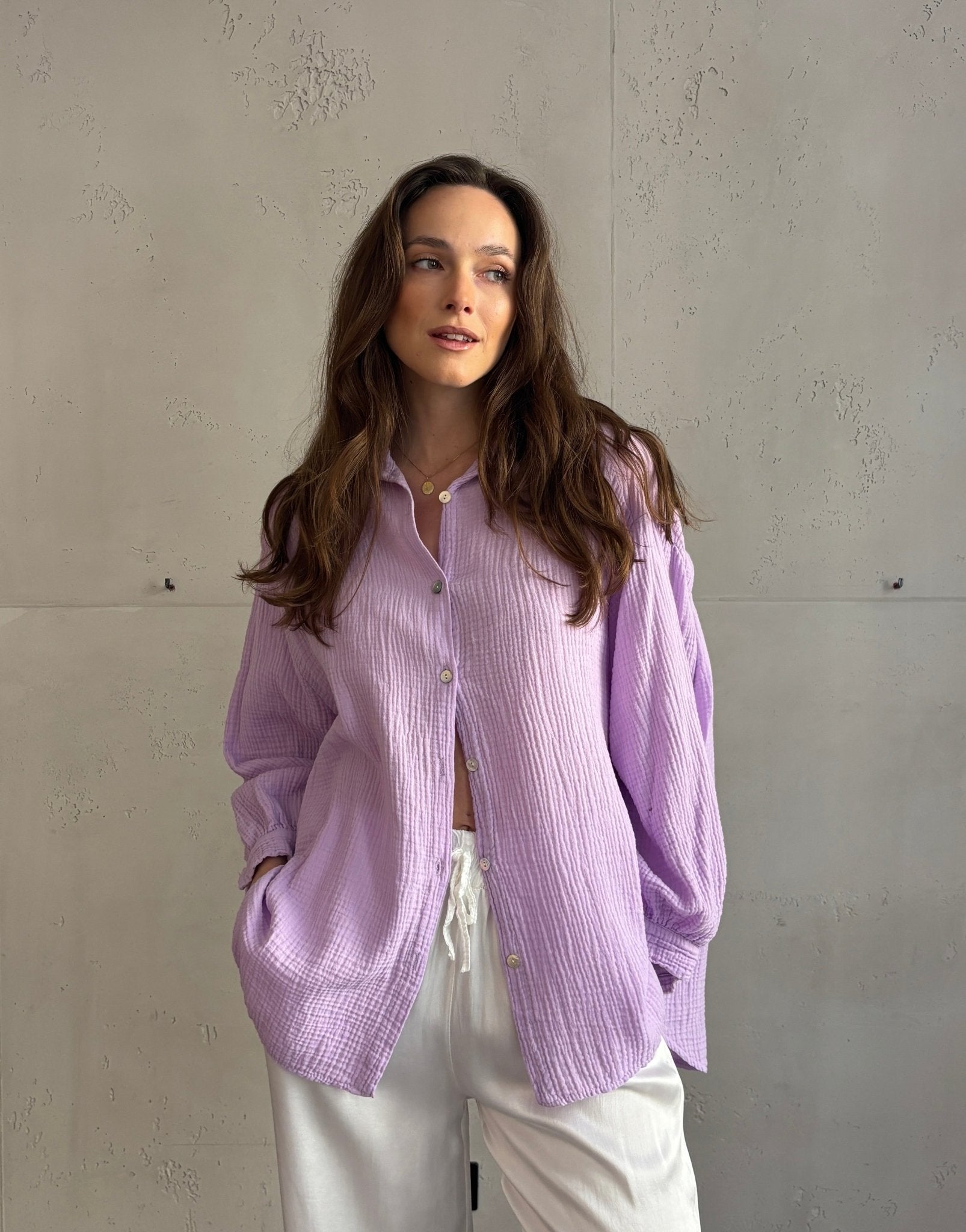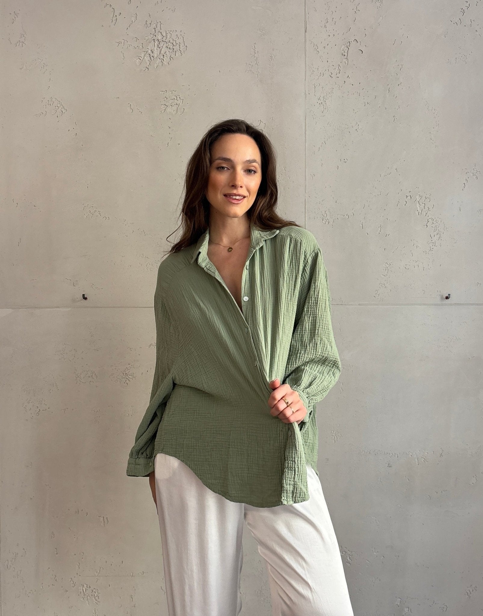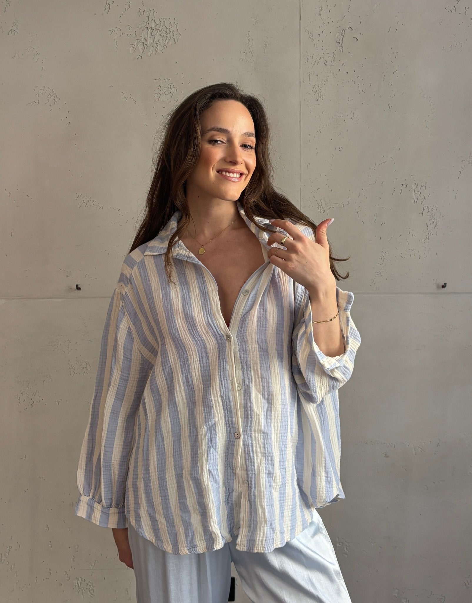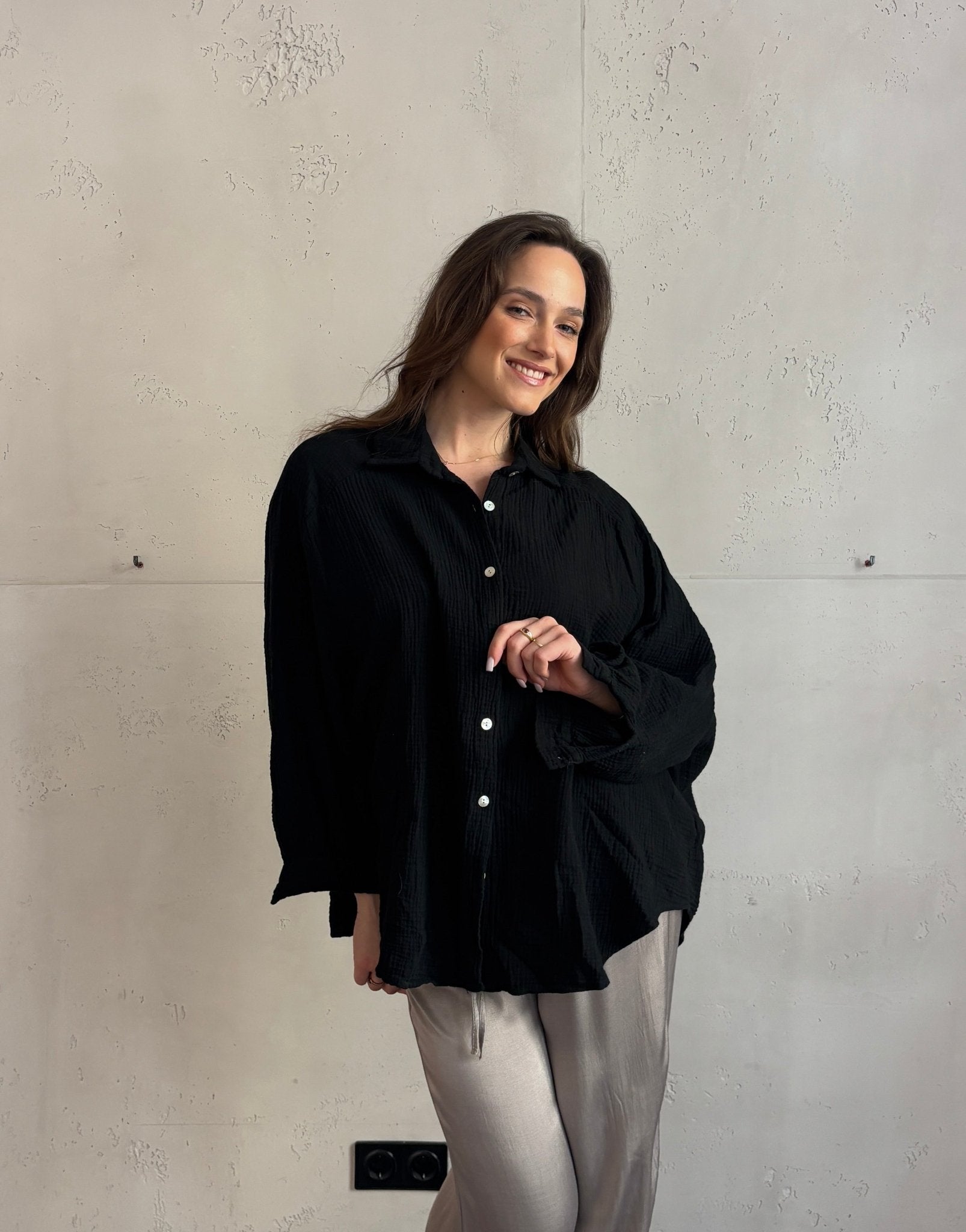 Oversize Leo Musselin Bluse mit kurzen Ärmeln