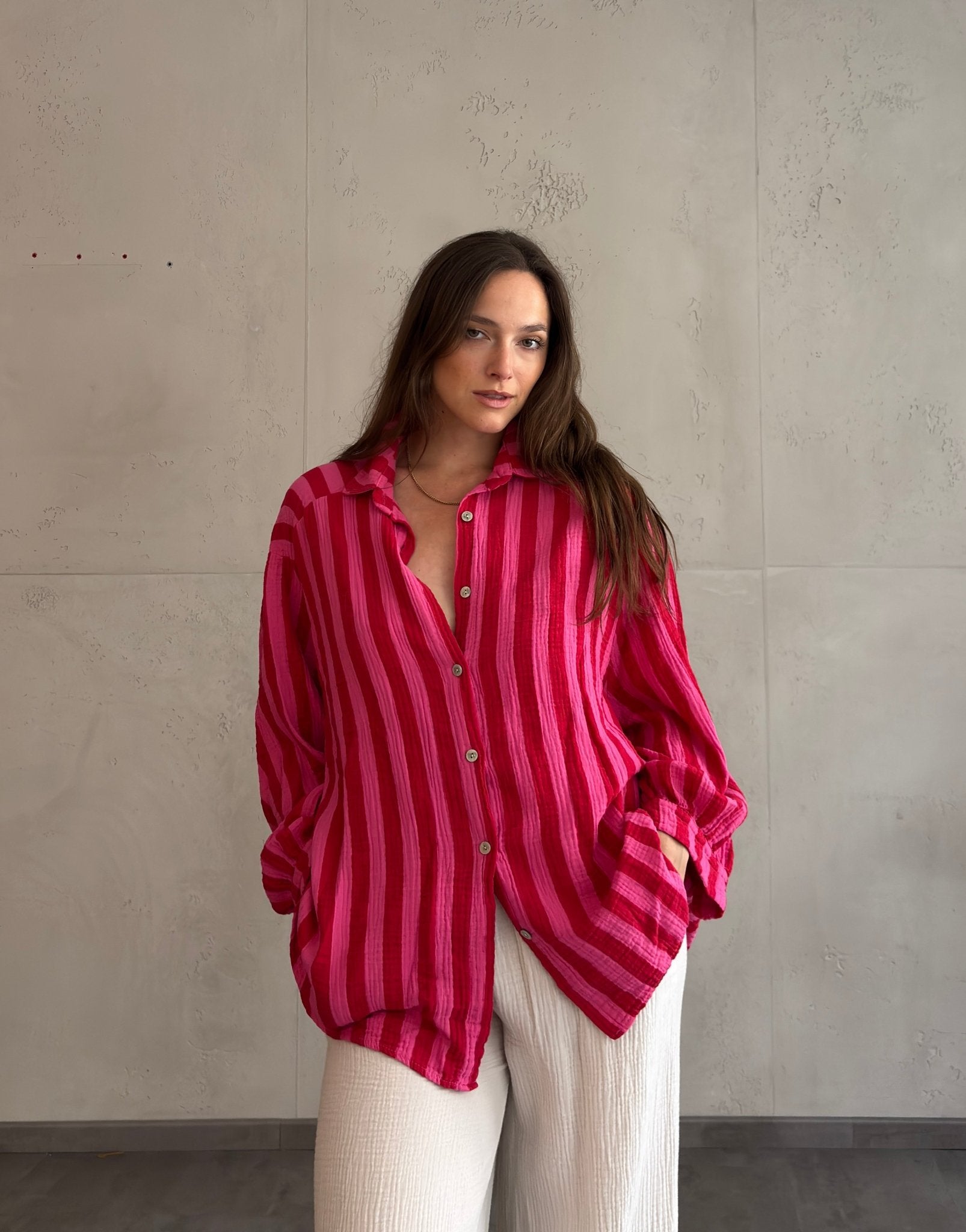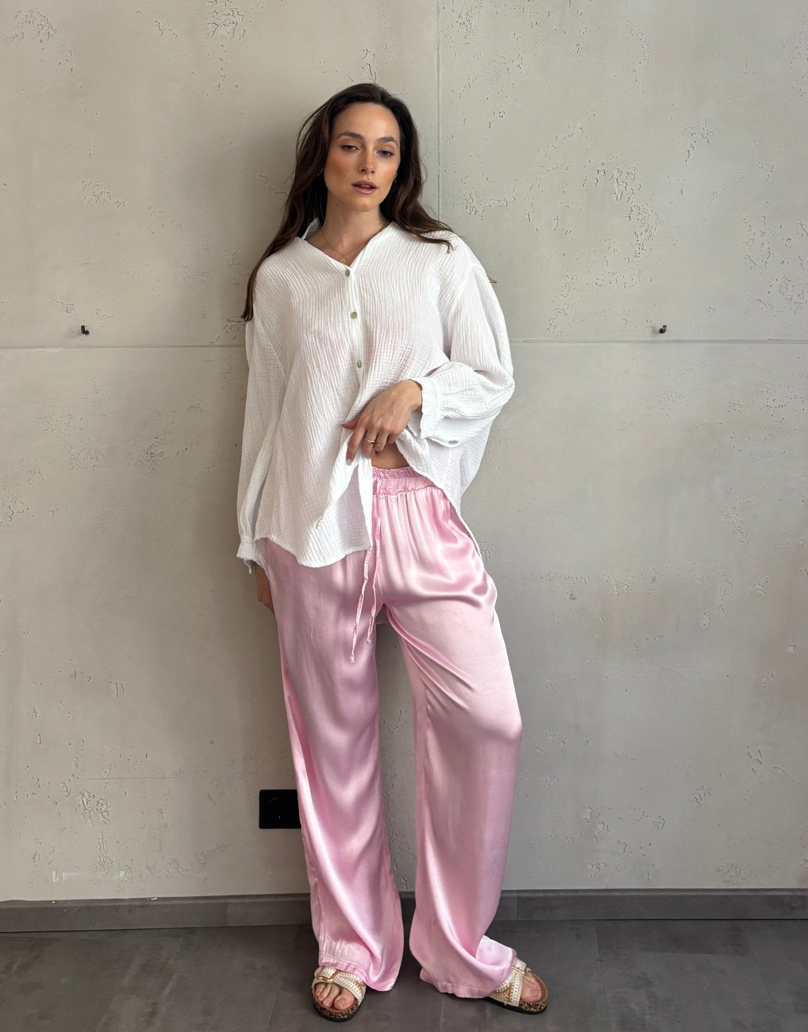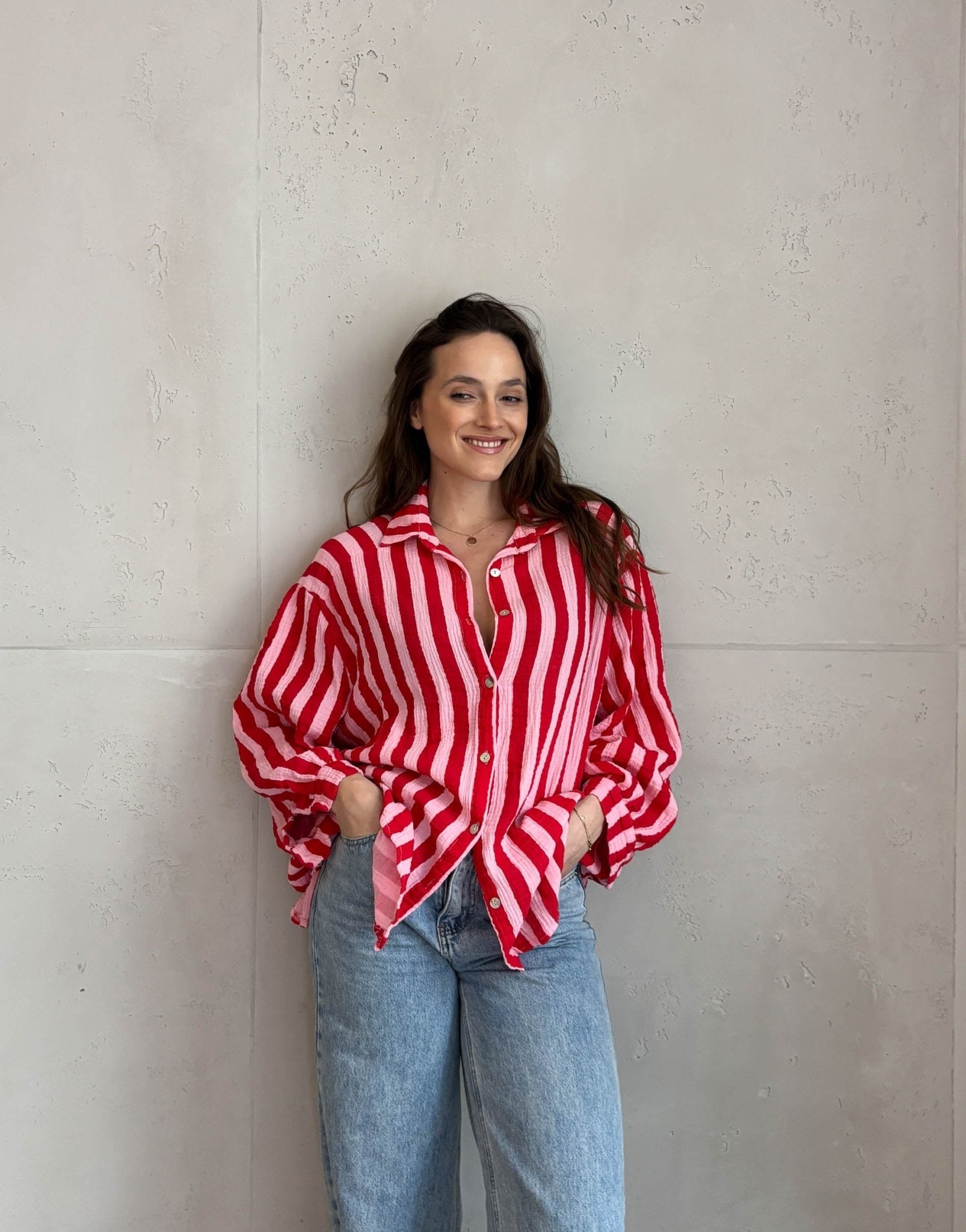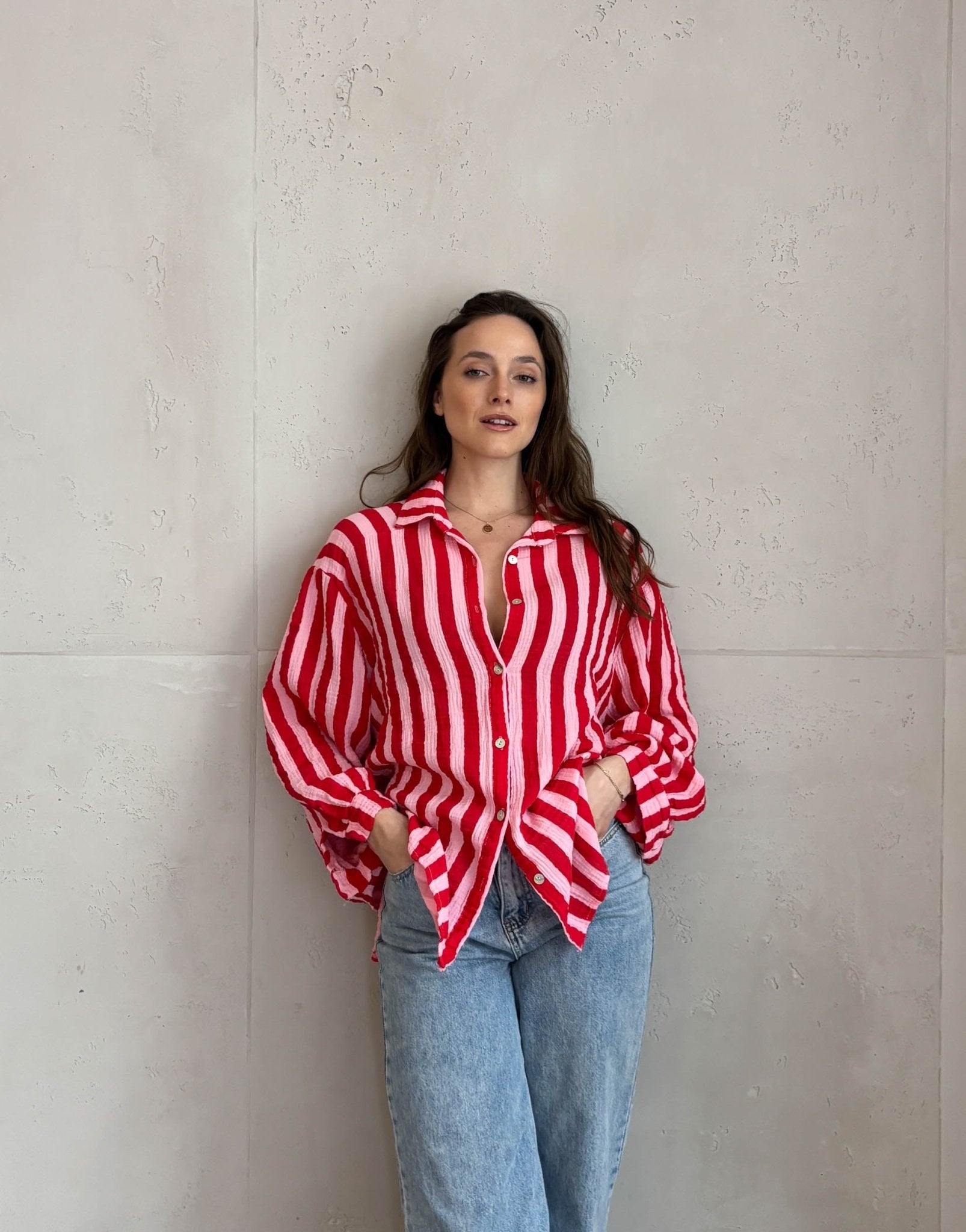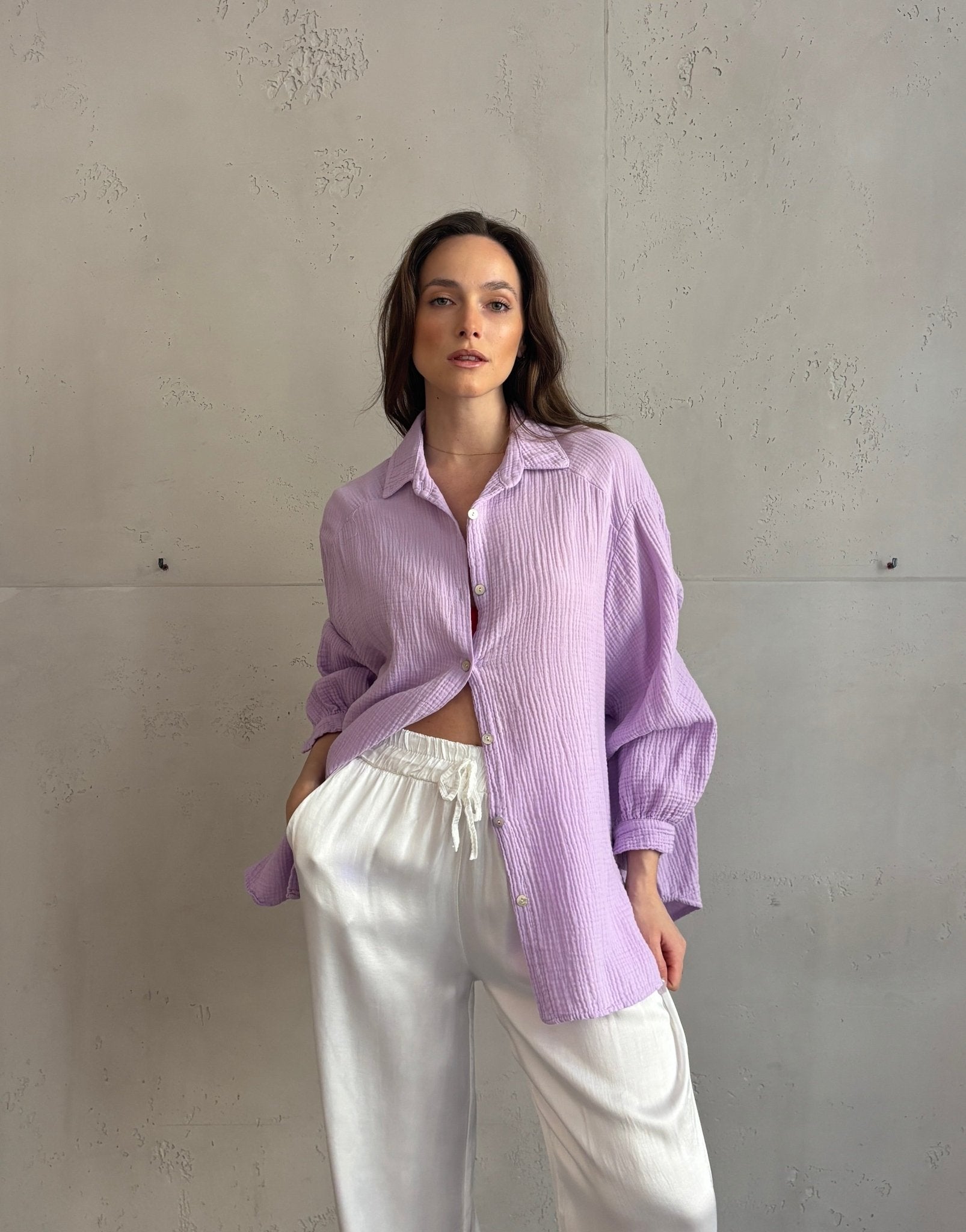 Oversize Leo Musselin Bluse mit kurzen Ärmeln