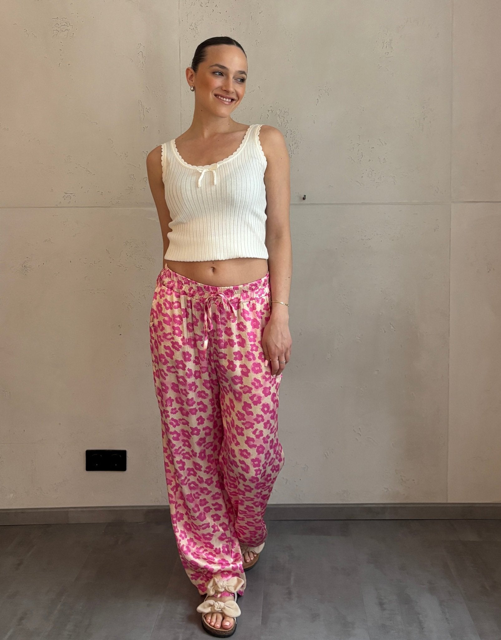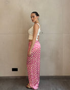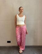 Silky Hose mit Blumenprint in Pink