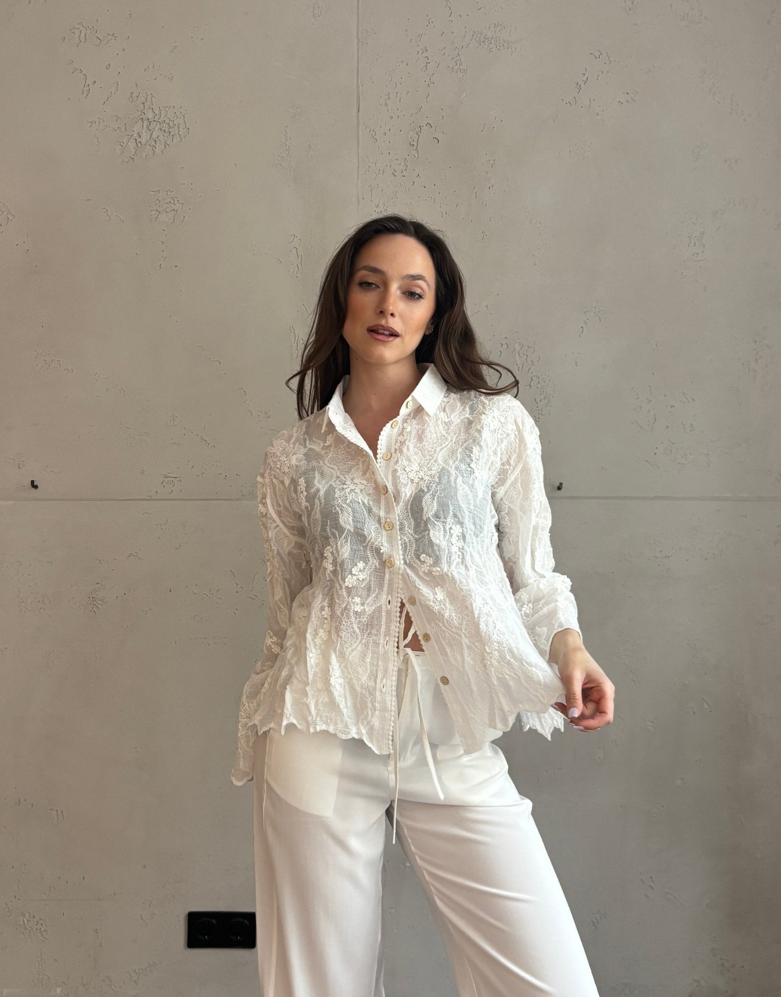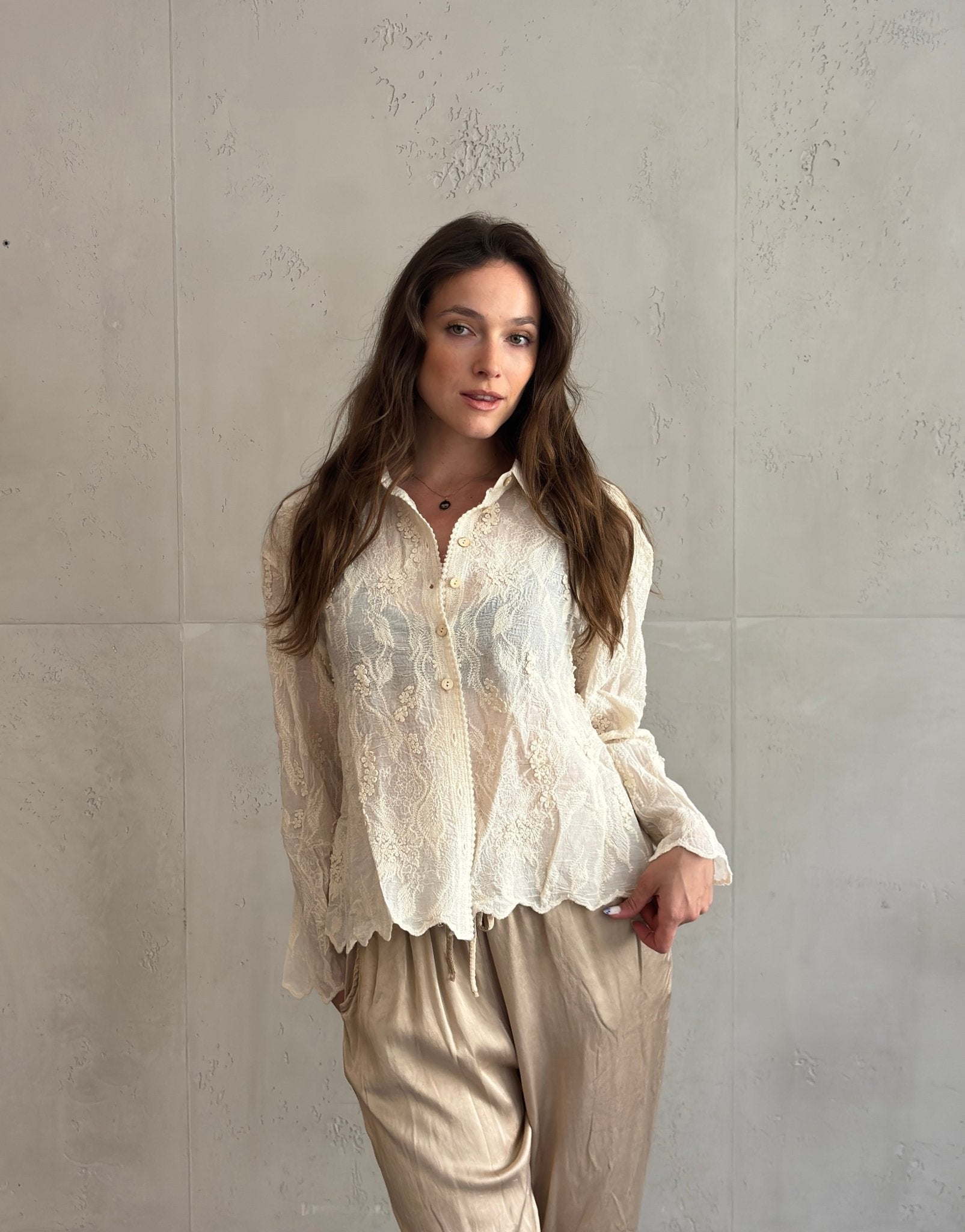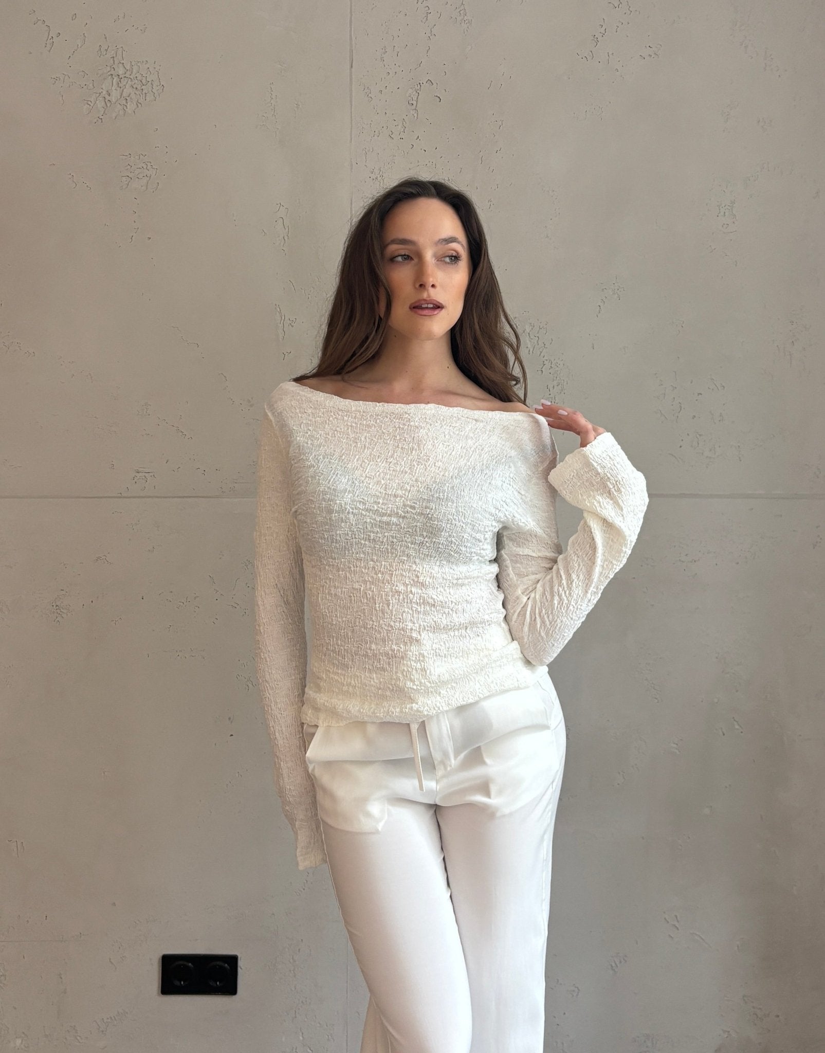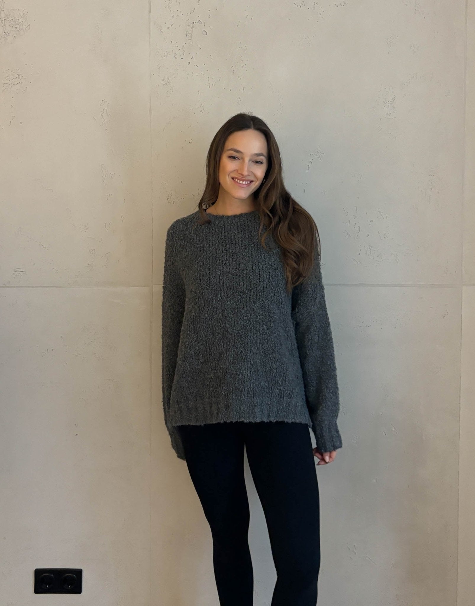Lange Boucle Strickjacke mit goldenen Knöpfen