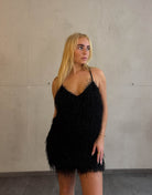 Das Mini Fransenkleid aus der exklusiven X-Mas Collection ist der absolute Hingucker für jede Party oder festliche Veranstaltung. Der moderne, stylische Schnitt und die verspielten Fransen verleihen dem Kleid einen besonderen Touch, der sich perfekt für unvergessliche Nächte eignet. Die verstellbare Rückseite sorgt für eine perfekte Passform und komfortablen Sitz, sodass das Kleid den ganzen Abend lang getragen werden kann.