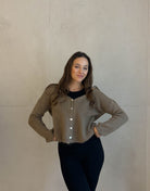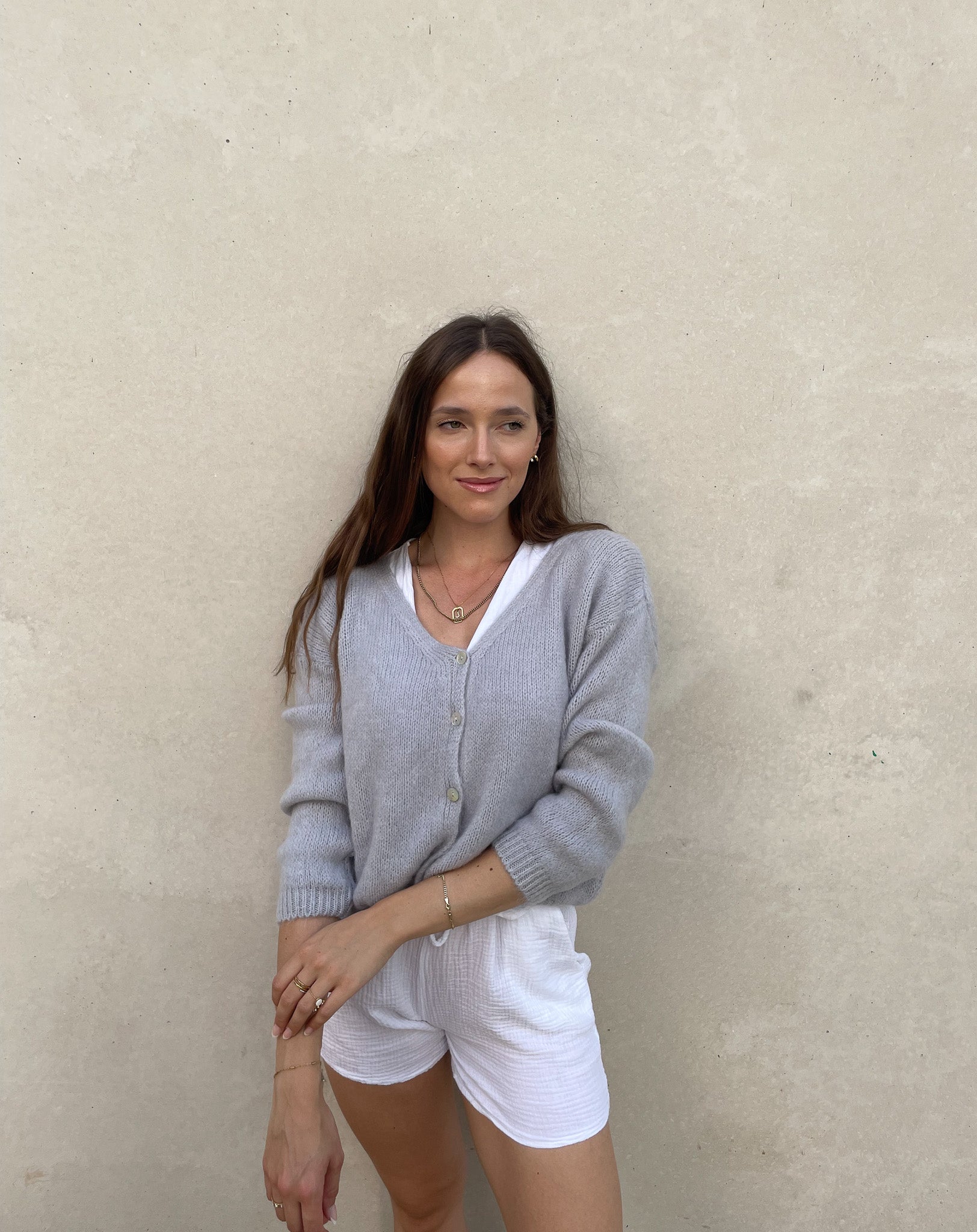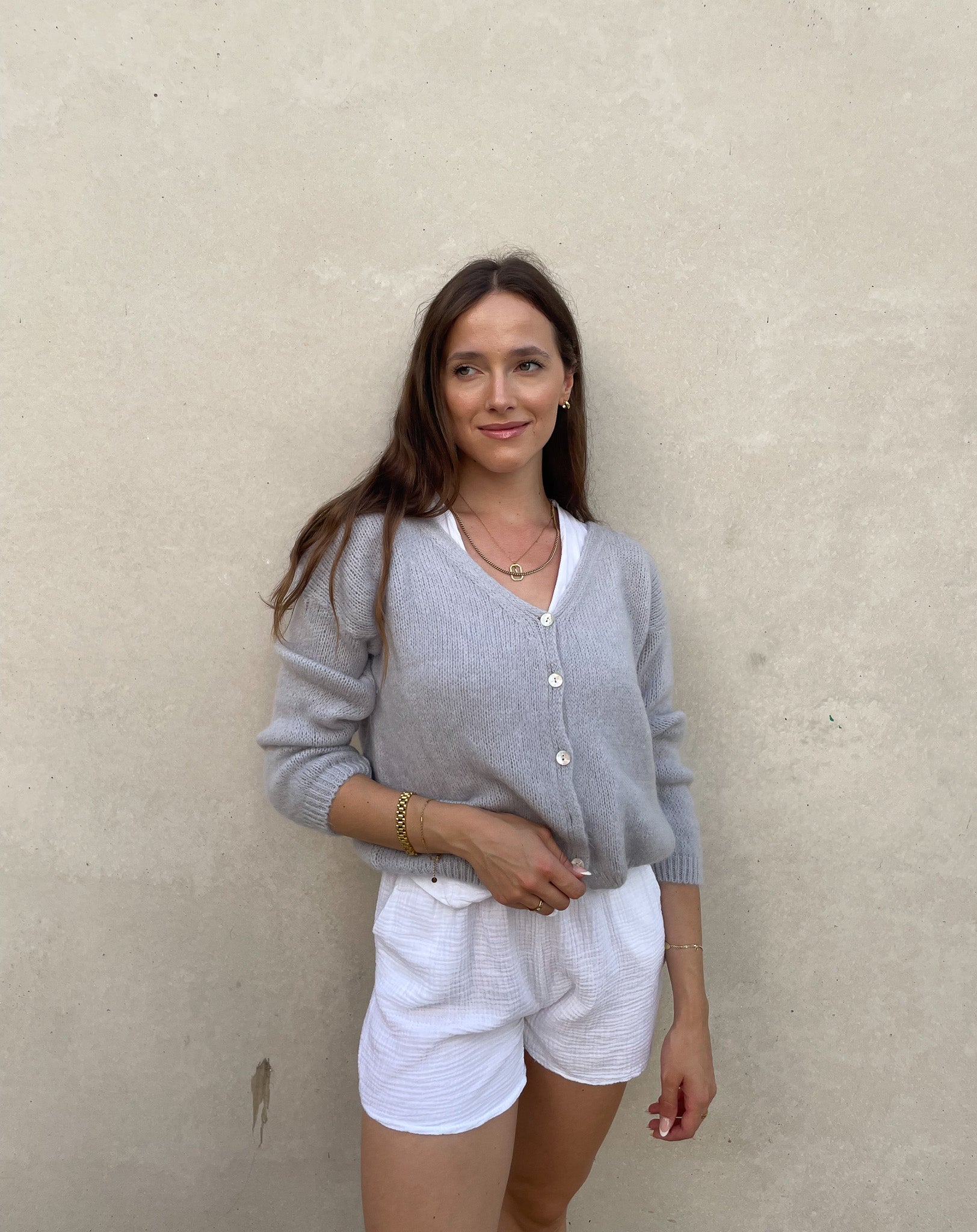 Kurze Mohair Strickjacke mit V-Ausschhnitt