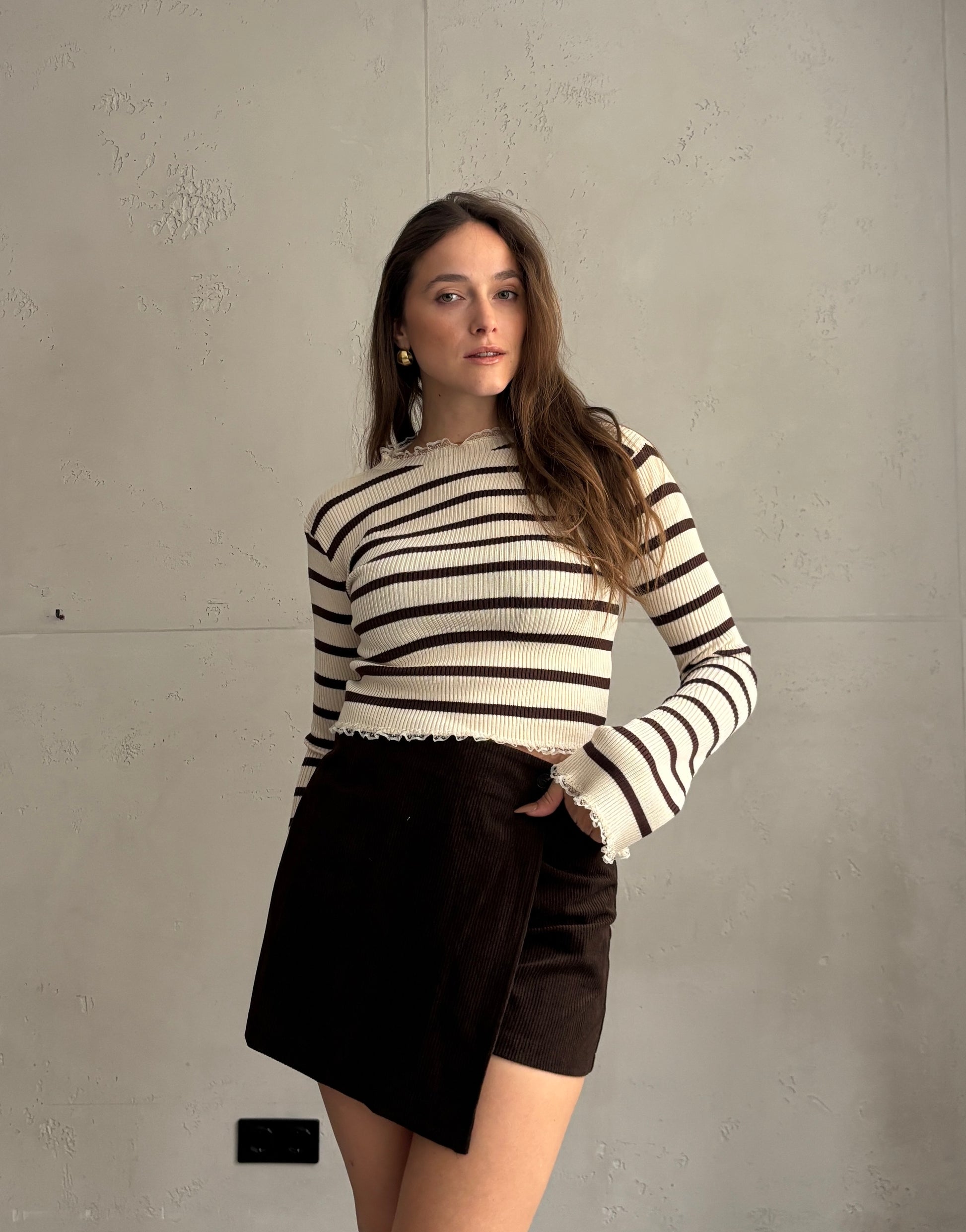 Gestreiftes Oberteil mit SpitzendetailsLieferzeit ca. 2-5 Werktage