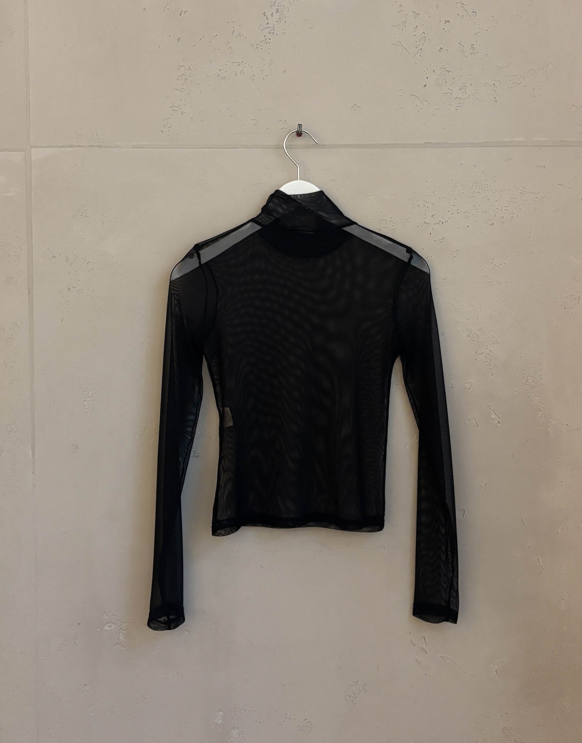 Das Netzoberteil ist in Onesize erhältlich und passt sich durch das elastische Material den meisten Körpergrößen an. Es bietet eine bequeme Passform und ist ideal für Größen zwischen 34 und 40. Das Modell Jovana trägt das Oberteil in der Onesize-Größe und es passt ihr perfekt.