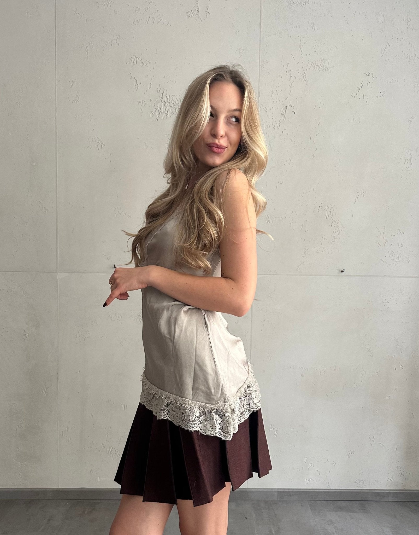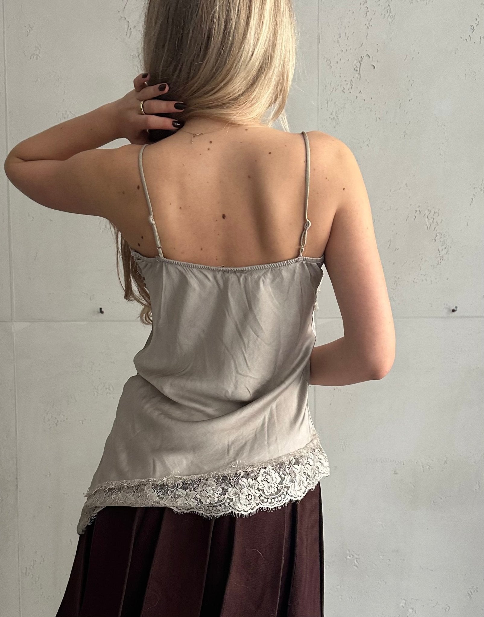 Asymmetrisches Spitzentop aus Seide & Viskose
